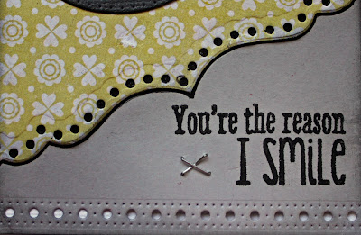 The smallest Pierced Banners was cut from light gray cardstock and stamped with my sentiment. I attached the banner to the top right corner with a tiny stapler and trimmed.